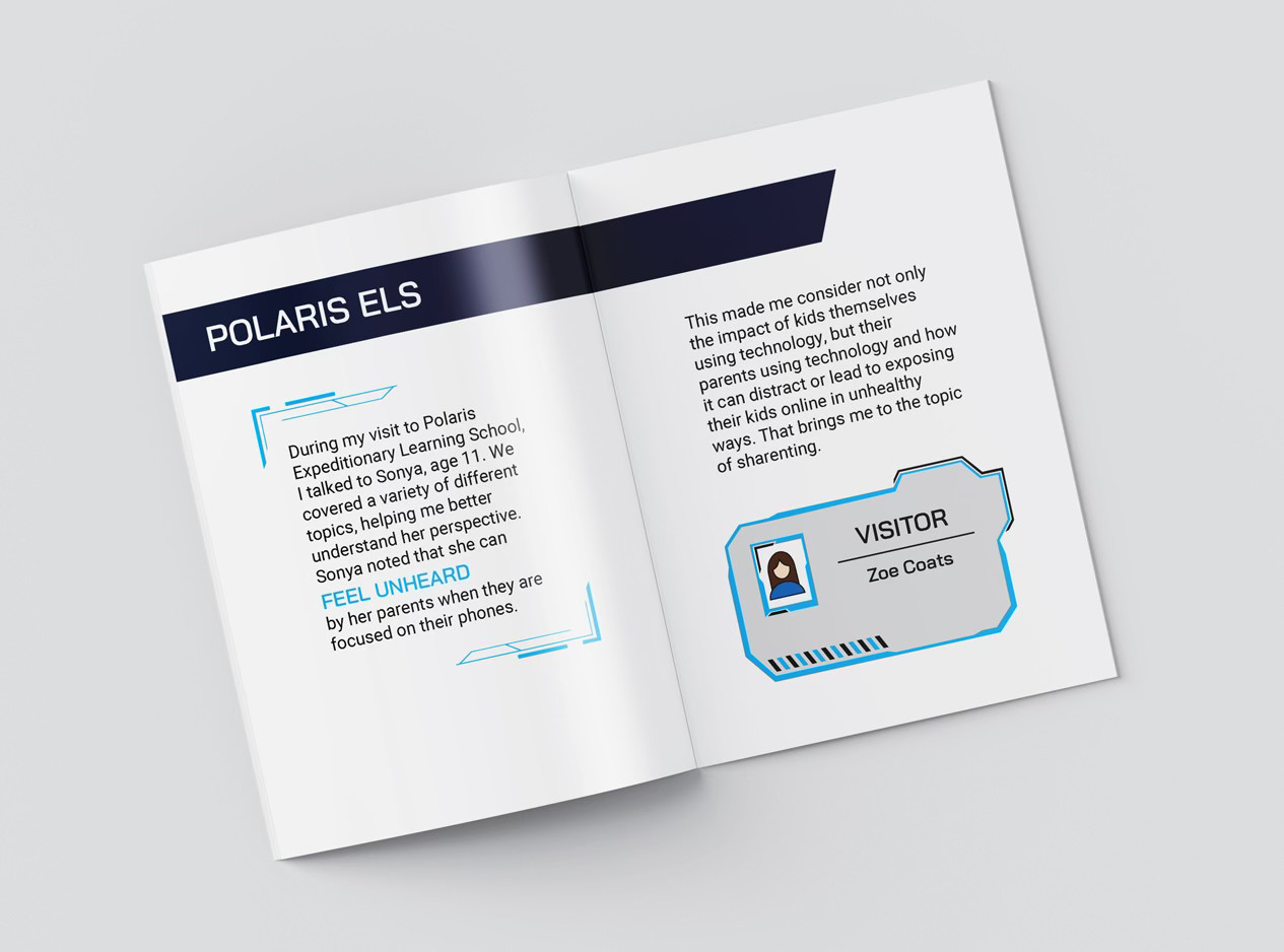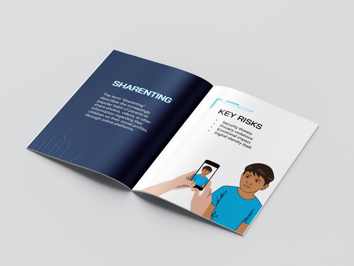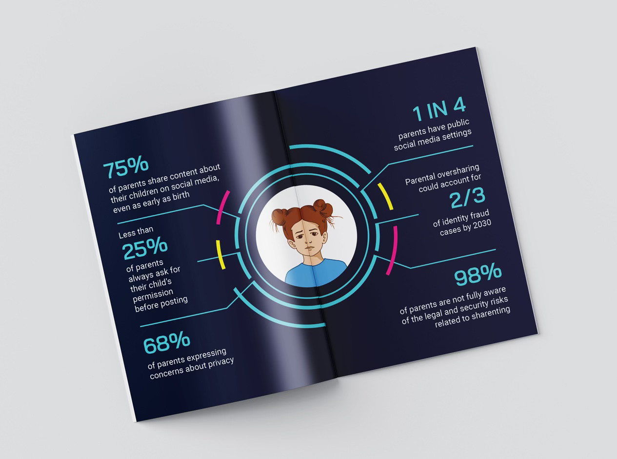 This poster explores the privacy implications of "sharenting" and the permanent digital identity parents create for their children from an early age. It was created for submission to the ARTtention Prague International Poster Festival, following the theme of “All children are our children.” A small zine further explores the concept of sharenting.